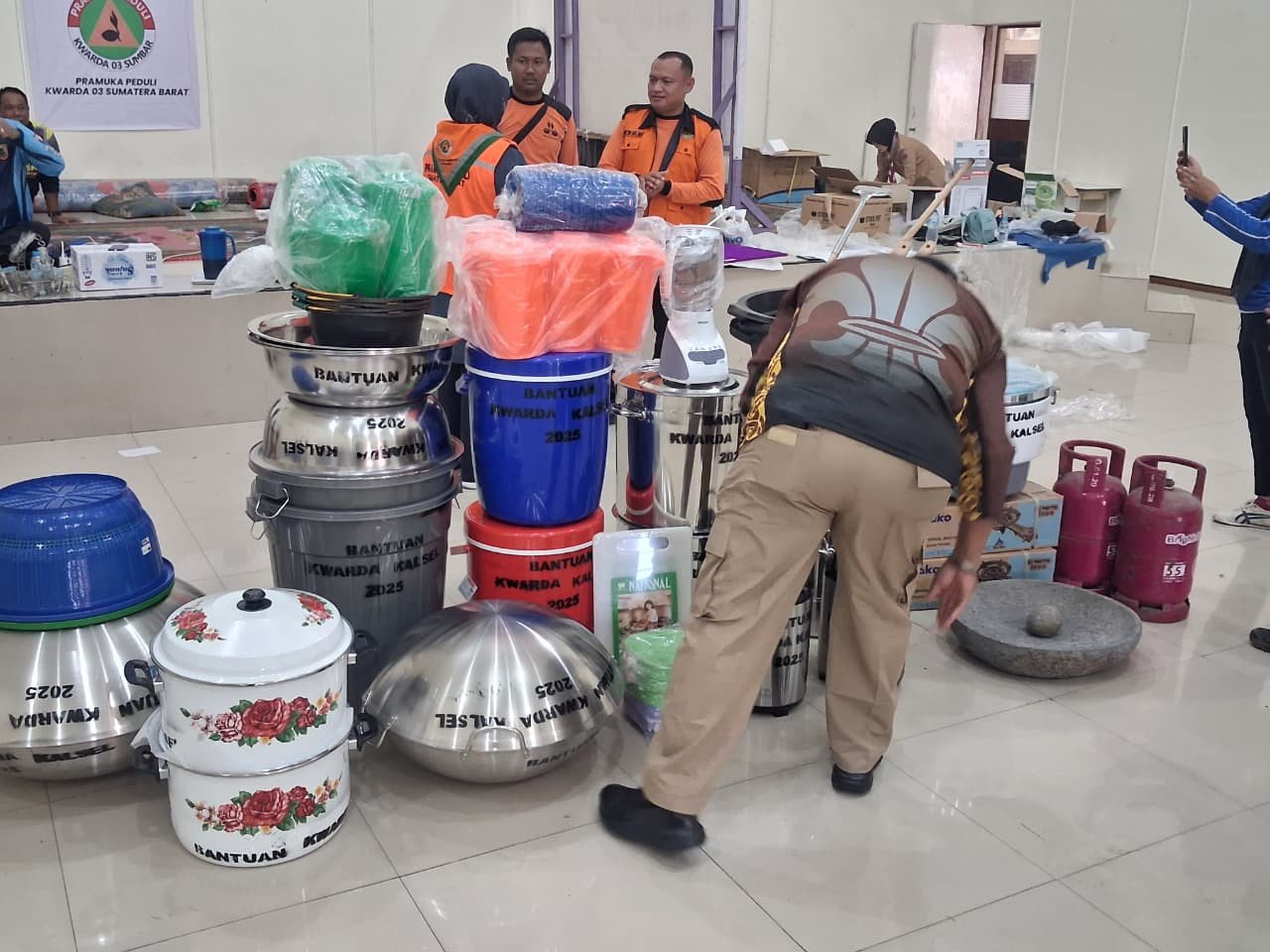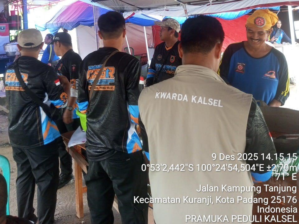 PADANG (SUMBAR), KWARDA KALSEL – Setibanya di Kota Padang, Sumatera Barat, Pramuka Peduli Kwartir Daerah Gerakan Pramuka (Kwarda) Kalimantan Selatan (Kalsel) yang ditugaskan bersama Taruna Siaga Bencana (TAGANA) dari Dinas Sosial Provinsi Kalsel, langsung melakukan berbagai kegiatan dalam membantu meringankan beban para korban penyintas bencana banjir bandang.