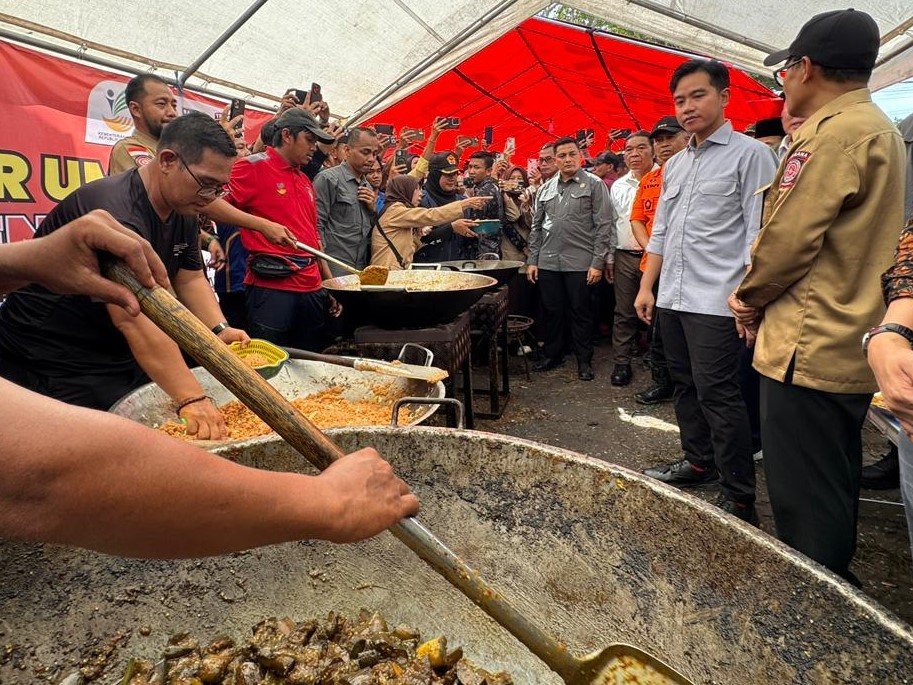 SUNGAI TABUK, KWARDA KALSEL – Wakil Presiden Gibran Rakabuming berpesan agar Dapur Umum harus dipastikan dapat menyediakan makanan tiga kali sehari bagi korban penyintas bencana banjir. Hal tersebut disampaikan Wapres saat meninjau Dapur Umum yang berada di Sungai Tabuk, Kabupaten Banjar dalam kunjungan kerjanya untuk meninjau kerusakan yang terjadi diwilayah terdampak dan para korban penyintas bencana banjir di Provinsi Kalimantan Selatan.